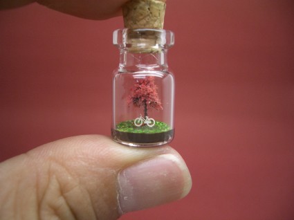 These tiny worlds created in a tiny glass bottle, literally, are the work of Akinobu Izumi and they’re available to you through his Esty shop (from $22 + shipping).